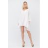 Платье свободного кроя с коротким рукавом из высококачественной летней джинсовой ткани. В качестве декоративного элемента контрастные текстильные вставки.